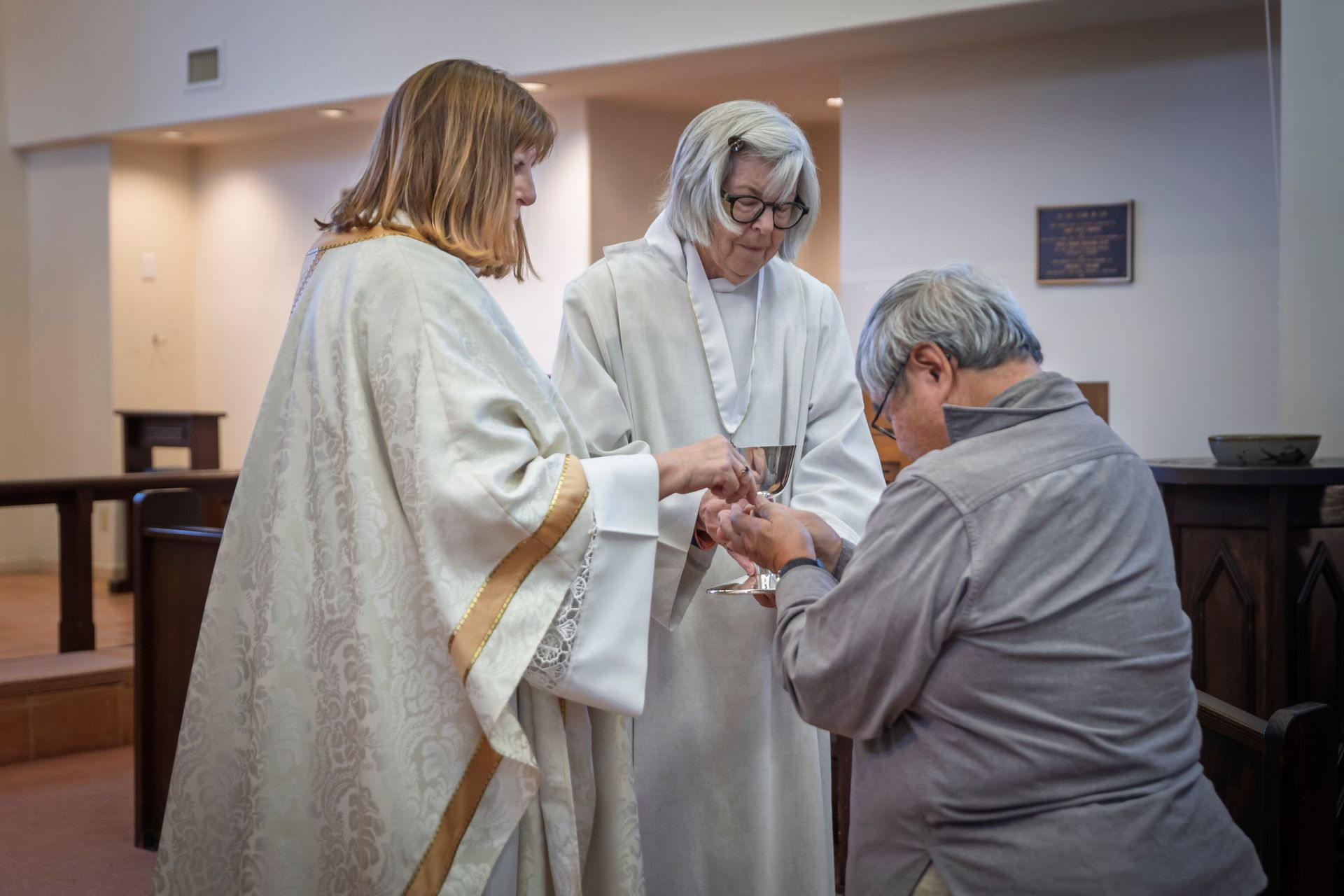 During the 3:00 PM service, one person was baptized and seven individuals were received into the Episcopal Church. As clouds moved across the sky outside, moments of sunlight filtered into the sanctuary, gently brightening the space as the service progressed.