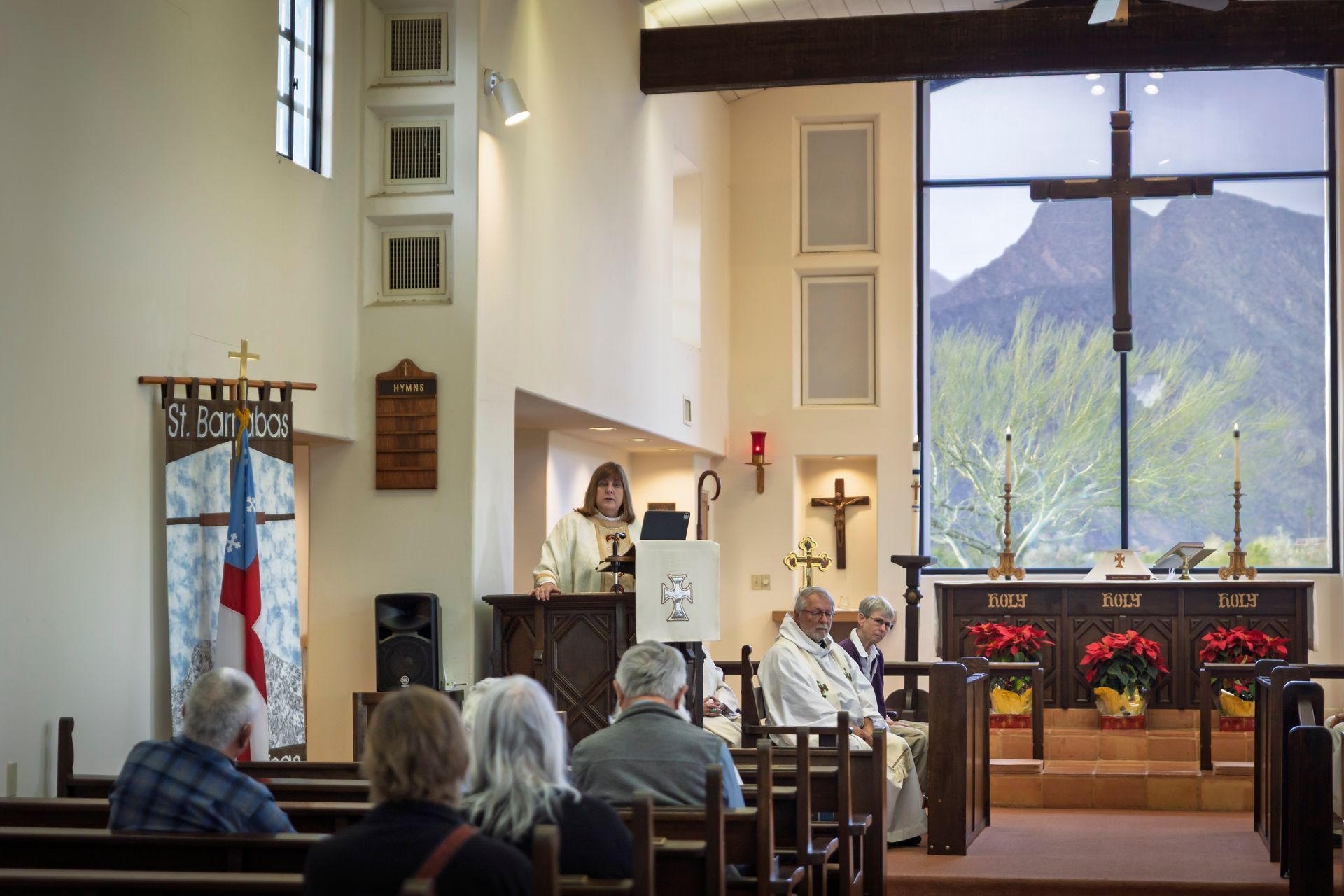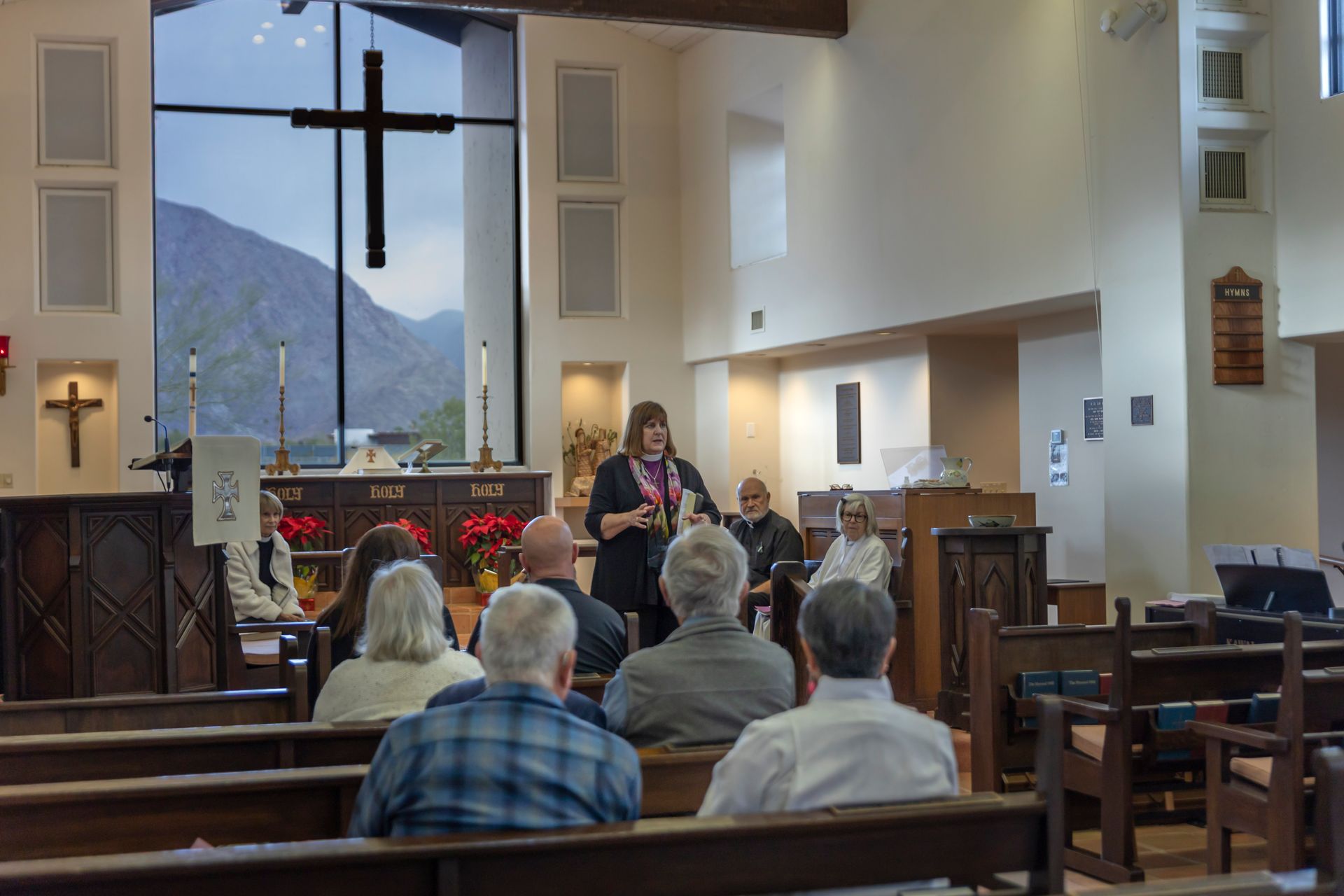 Before the service began, The Ven. Cindy Campos, Archdeacon of the Diocese of San Diego, introduced herself and shared brief updates on diocesan ministry. She spoke about work beyond the border, including Comunidad de Luz in Tijuana, which serves migrant women and children through education, care, and support. She also highlighted the Emergency Air Conditioning program, a St. Barnabas initiative serving the Borrego Valley with support from a diocesan grant.