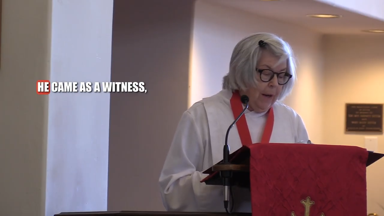 Sermon by Jan Naragon St. Barnabas Episcopal Church, Borrego Springs There was a man sent from God, whose name was John. He came as a witness, that he might bear witness to the light, that all might believe through him. He was not the light, but came that he might bear witness to the light. Recently you've read about a leader in a much-contested part of the world who felt insecure in his power. Desperate to maintain the status quo, he cast a wide net to rid himself of the threat, killing thousands of children in the process. I am speaking of King Herod. This year, the Feast of the Holy Innocents falls on a Sunday. Holy innocents were the babies that were slain by the order of Herod after he was hoodwinked by the Wise Men. Shortly, we'll say a prayer of lamentation to commemorate the thousands of innocent children whose lives were lost in the conflict between Hamas and Israel, more than 20,000 since October of 2023. Loss of potential, unimaginable anguish of so many parents. Yes, it's more than terrible. Maybe we want to do something, but what? John's gospel offers an action item for us today in the Baptist bearing witness to the light. What is this bearing witness thing? The Ten Commandments speak of bearing false witness against one's neighbor. What about true witness? Bearing witness is an act of intentional remembrance. It is an act of etching something important into our oral history that can never be destroyed. Our Bishop Susan recently was in the news for bearing witness, standing in solidarity with immigrant detainees outside of a federal courthouse. An organization of Palestinian Christians called Sabeel has been bearing witness weekly in the absence of press coverage of the events in Gaza and the West Bank. Listening and being present preserves the crucial historical moments that may fade with neglect, time, and juicier news. How many of you have been in a situation where you felt powerless, where you could not act upon a perceived injustice and said, "Well, that's all well and good, but we know what really happened." Well, that's bearing witness. John the Baptist knew what really happened. His ministry was the first step in making sure that Jesus got remembered, that the word was the light of men and women. That no matter what happened later, the darkness would not overcome the light. Bearing witness doesn't require physical prowess or good health. It is an act of coming alongside to ensure accurate memory, to express solidarity, and to reinforce the equality of every child of God. Bearing witness does not cancel out the need for forgiveness. It brings the need for forgiveness into sharper relief. Bearing witness begins with prayer. Every week, we pray for our distressed world. Remembering and expressing compassion through prayer opens the door of our awareness, bit by bit. Perhaps remembering and lamenting can lead us to speak truth to power. A quote from Chris Tumulty: "In a season when many feel powerless, the act of gathering in prayer brings solidarity and strengthens the resolve of those working toward justice, reminding us that suffering should never go unacknowledged or unanswered." Dame Jane Goodall said, "The big problem today is that so many people feel insignificant. They feel that the problems facing the world are so huge that there's nothing they can do, so they do nothing. And as an individual, maybe there isn't really that much, but when you get thousands, and then millions, all doing the best they can every day for other beings, then you get huge change." Bearing witness when and where we can is in God's image, is Emmanuel, God with us. There was the true light which, coming into the world, enlightens every person. We are all keepers of the light. Let's close with an excerpt from O Holy Night. Truly, he taught us to love one another. His law is love and his gospel is peace. Chains shall he break, for the slave is our brother, and in his name, all oppression shall cease. Amen.