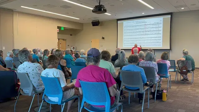 On Wednesday, March 26, 2025, the Borrego Springs Library hosted the San Diego Fasola Singers for a public Shape Note singing session. The event was led by Jeanne Plekon, with support from the San Diego Fasola crew and local participants including Beth Hart, Naomi Madsen and more. Attendance exceeded planned seating, and additional chairs were brought out to accommodate the audience.